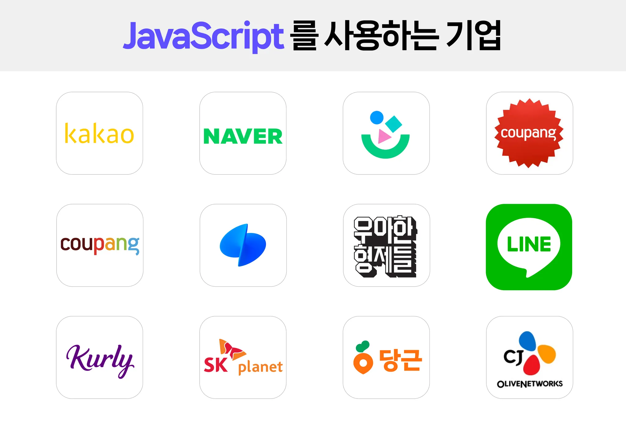 첫째, 많은 기업에서 JavaScript를 필수적으로 사용하고 있어요!