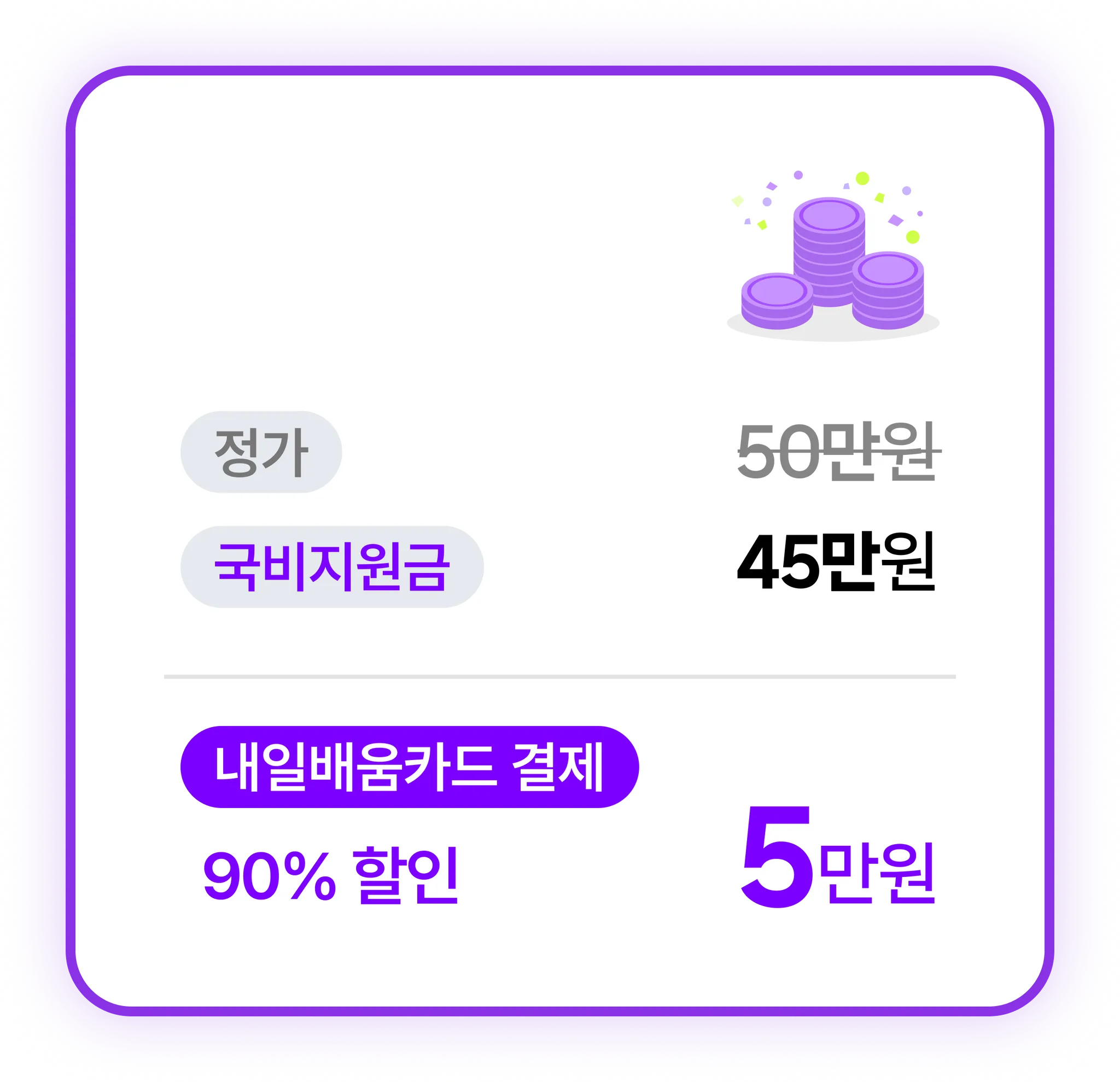 나머지 5만원은 ‘내일배움카드’로 결제를 진행해야 합니다!