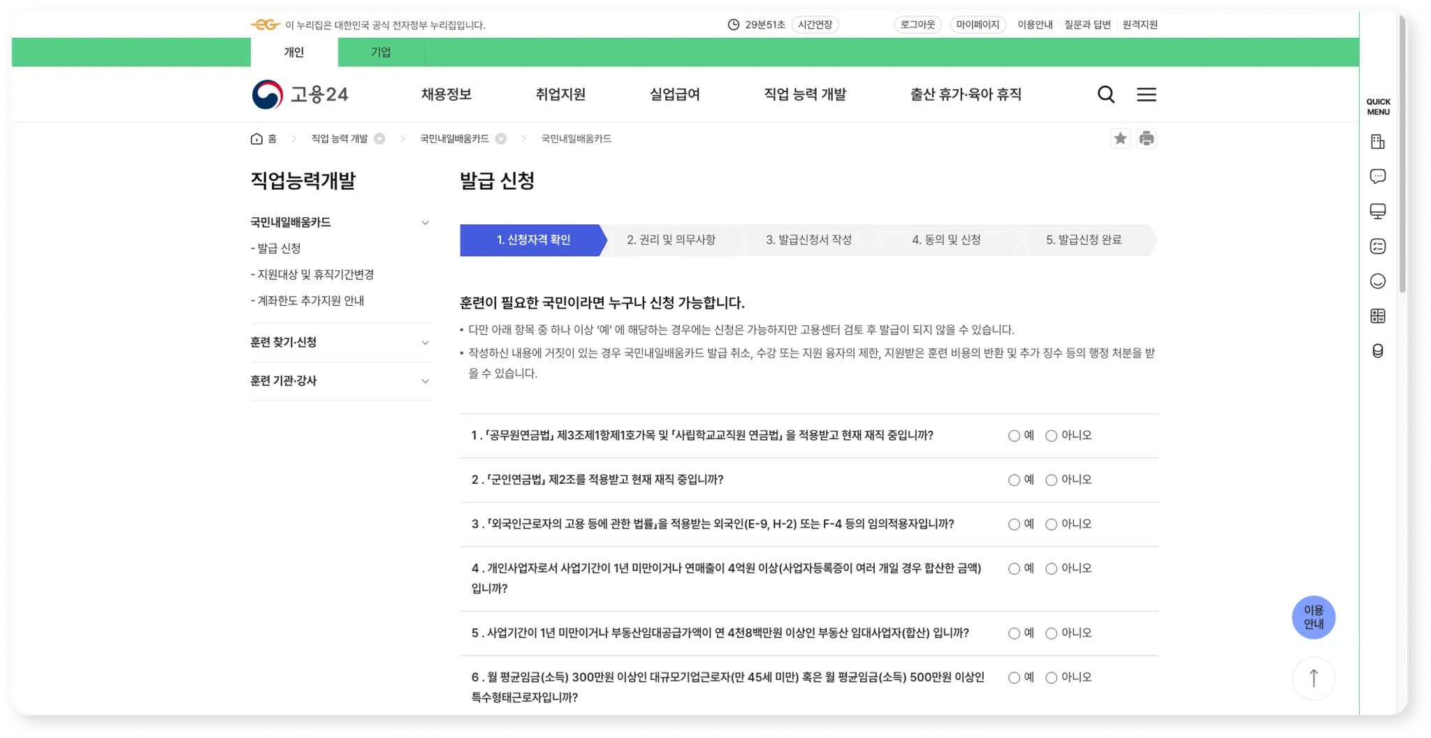 [중요] 카드 정보 입력 - 가장 빠르게 내일배움카드 발급받는 방법