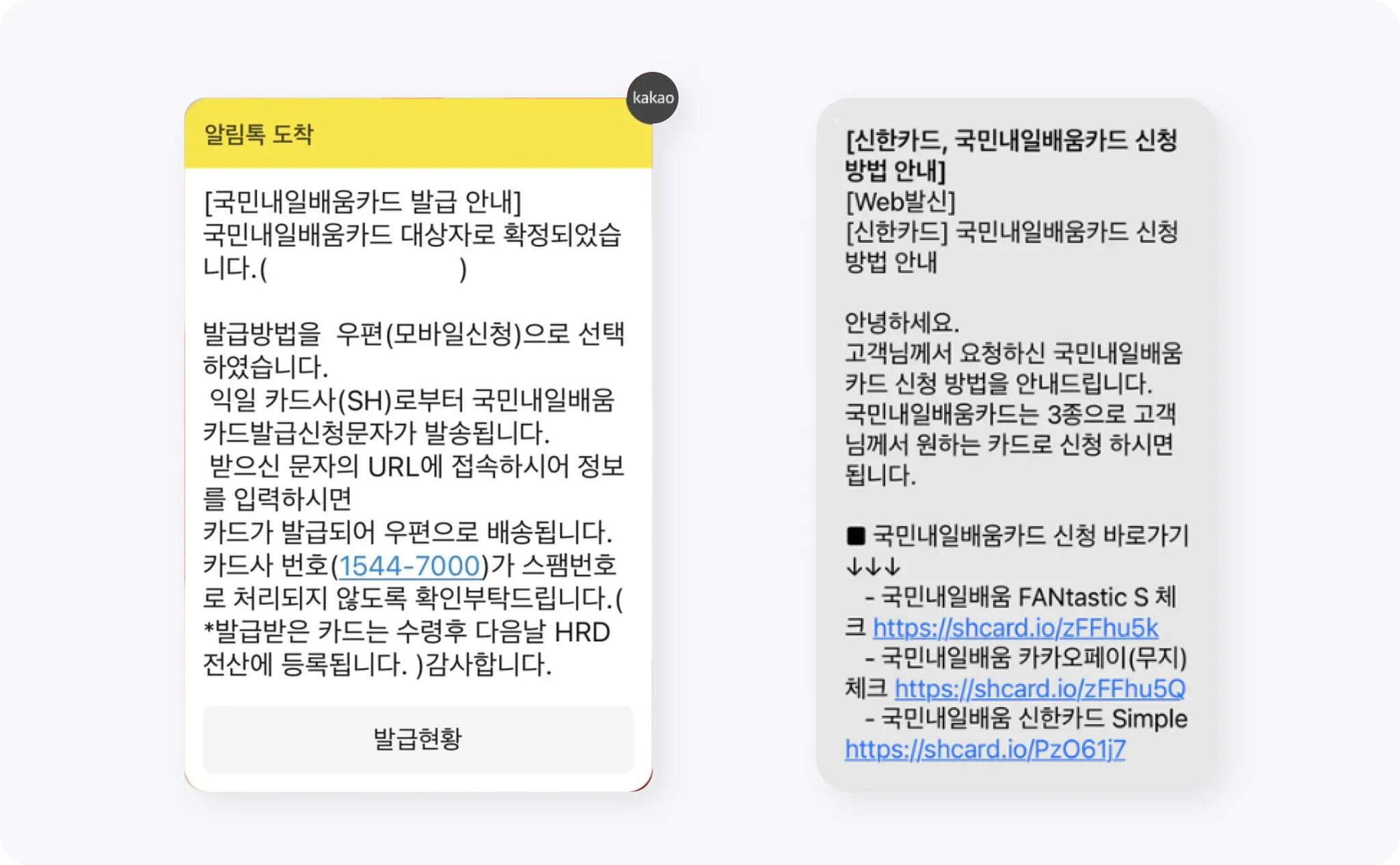 대상자 확정 안내 및 신한카드 문자 확인하기